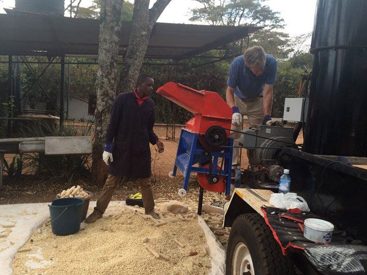This year VIP launched a mobile maize processing unit in Western Kenya. The engine runs a belt driven maize sheller producing enough waste cobs to both shell and dry maize. The fans are run by electricity, and the thermal energy, in the form of hot air, dries the maize. Properly dried maize allows farmers to get a better market price and store enough maize for personal consumption during the “hunger season.” Maize is harvested in some regions of Kenya for at least eight months of the year.